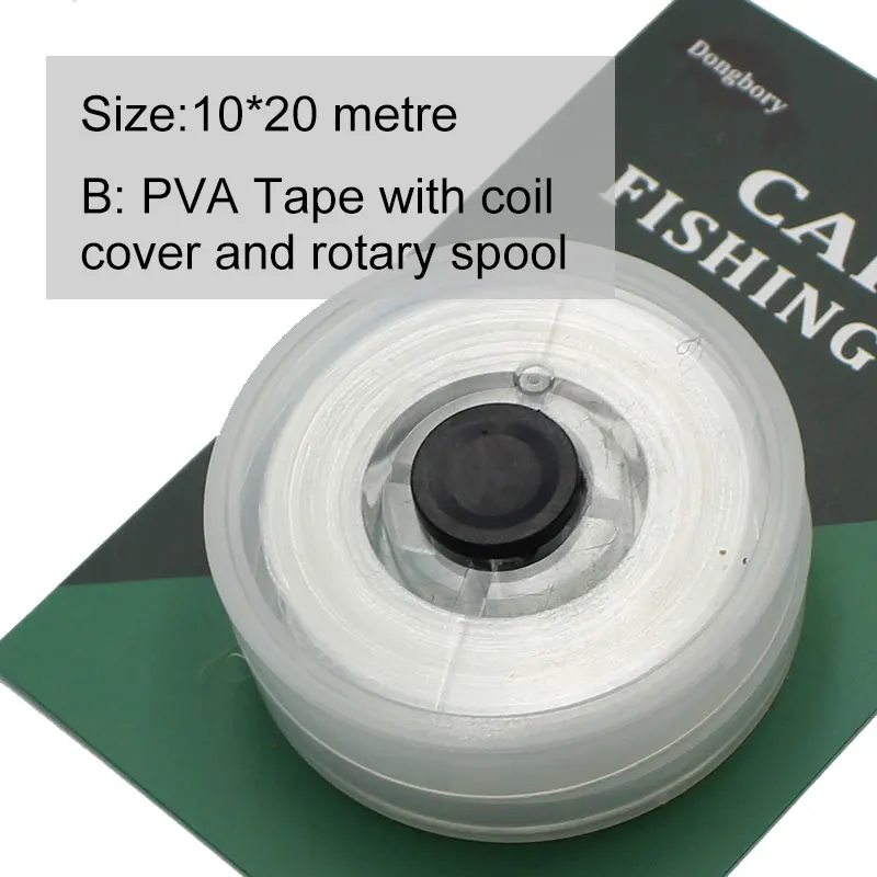B: Cinta PVA con tapa de bobina y carrete giratorio.