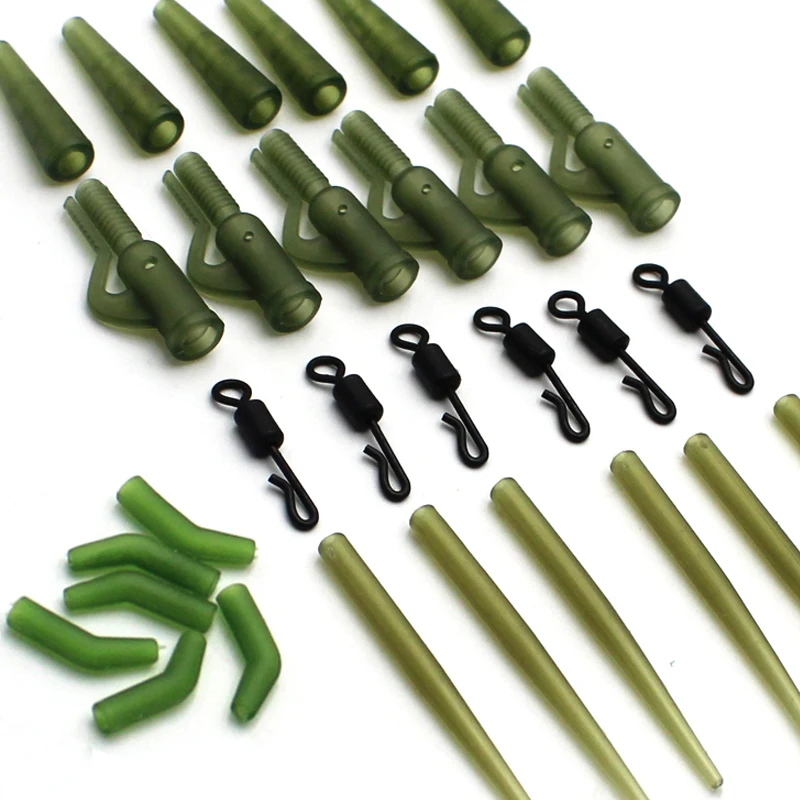 Accesorios de pesca de carpa, Clip de plomo, cola giratoria de cambio rápido, mangas antienredos de goma, alineador de línea para aparejos de pesca de carpa