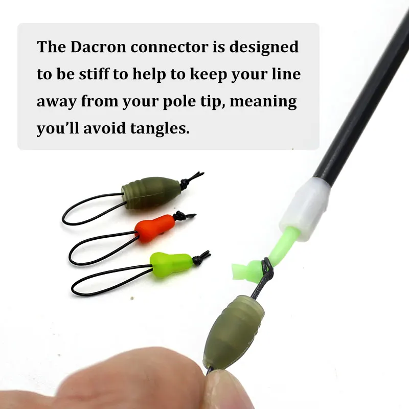 El conector Dacron está diseñado para ser rígido para ayudar a mantener la línea alejada de la punta del poste, lo que significa que evitará enredos. Las cuentas altamente visibles están disponibles en tallas S y L.