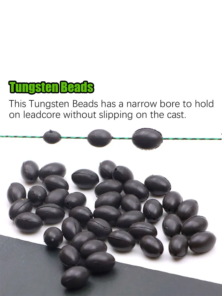Ultra heavy tungsten oval beads for use with Leadcore.It has narrow bore to hold on leadcore without slipping on the cast.