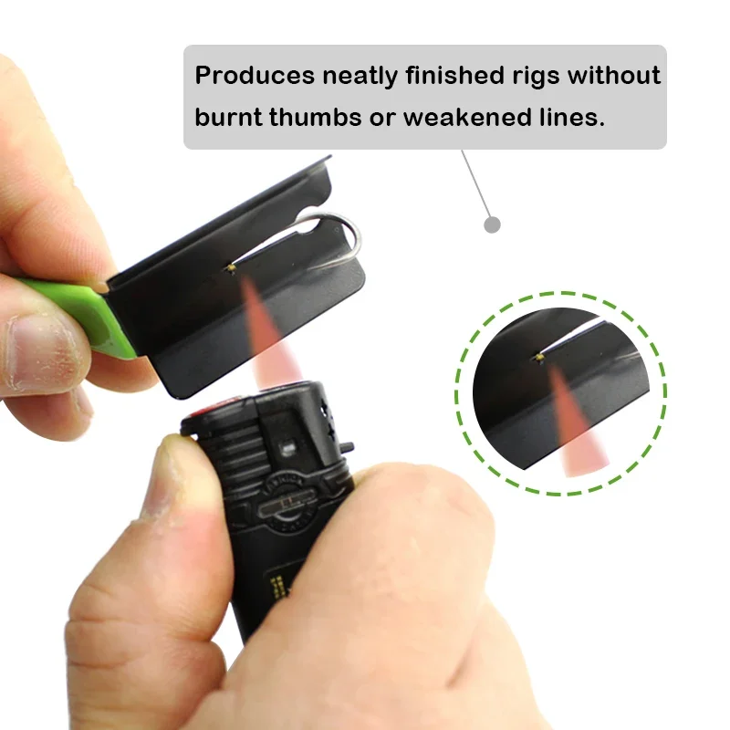 El Rig Flame Shield protege la línea de chod contra daños por quemaduras cuando la etiqueta se termina con bucles D y un nudo limpio del chod rig.