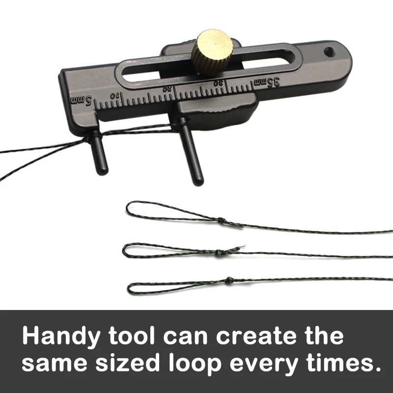 El medidor de bucle ajustable te ayuda a crear siempre el mismo tamaño de bucle. Un accesorio muy útil que mejora su precisión al atar la longitud del anzuelo de la pesca de carpa.