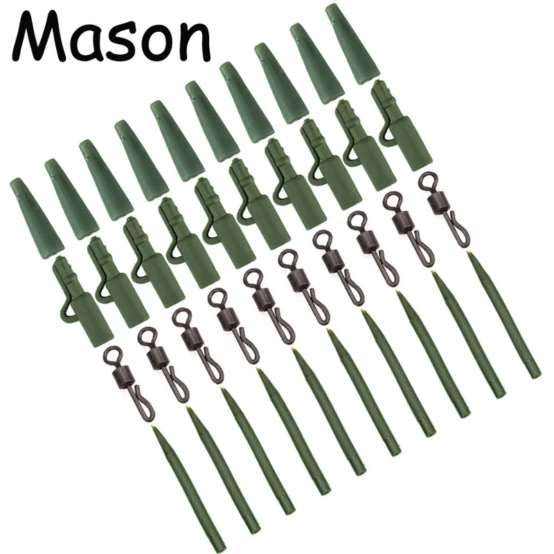Accesorios de pesca de carpa, 40 unidades, pinza de plomo, cola giratoria de cambio rápido, mangas antienredos de goma, aparejos de pesca de carpa gruesos