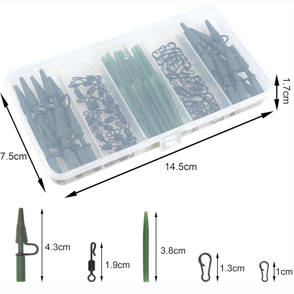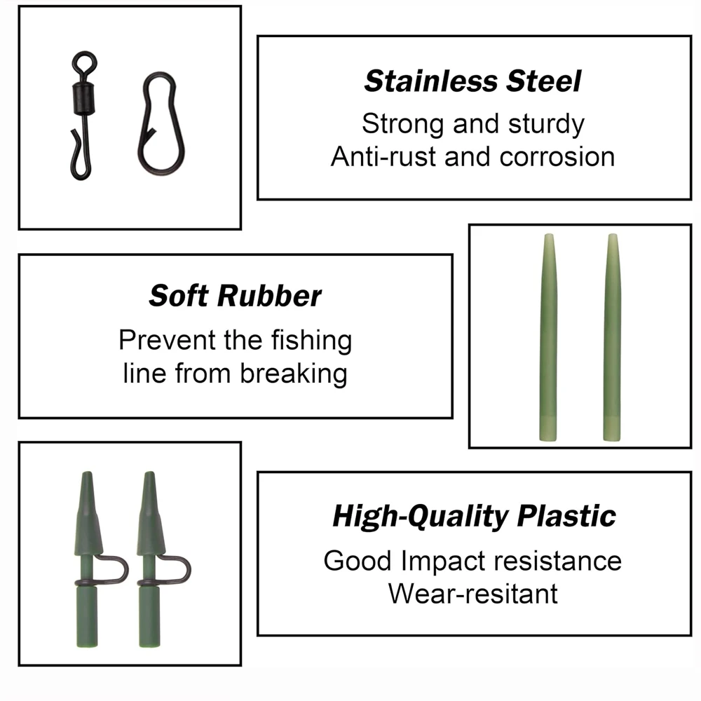 3. Los accesorios para aparejos de pesca de carpa vienen con una caja de plástico transparente con compartimentos, puede poner diferentes accesorios en diferentes rejillas, fácil de identificar y organizar.