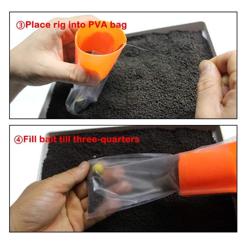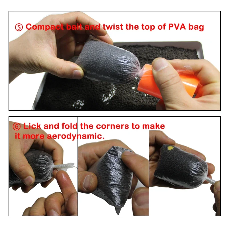 5 cebos compactos y gira la parte superior de la bolsa de PVA
