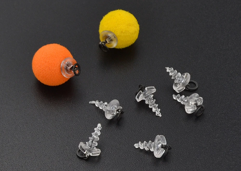 10 tornillos de cebo de plástico con engranajes giratorios, carpa de pesca, con anillos de plataforma de perforación en forma de D, accesorios de plataforma de perforación Chod, pesca