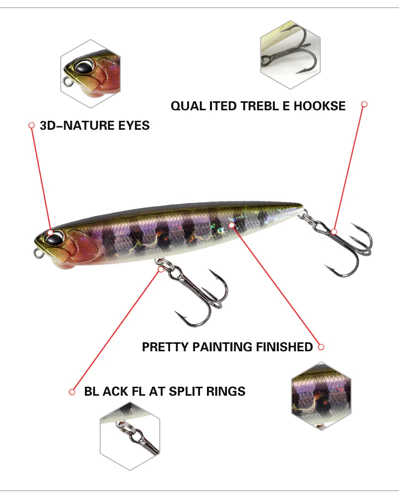 3. Los cebos tienen pintura realista y ojos 3D vívidos, hacen que el cebo parezca un pez real nadando en el agua durante la pesca.