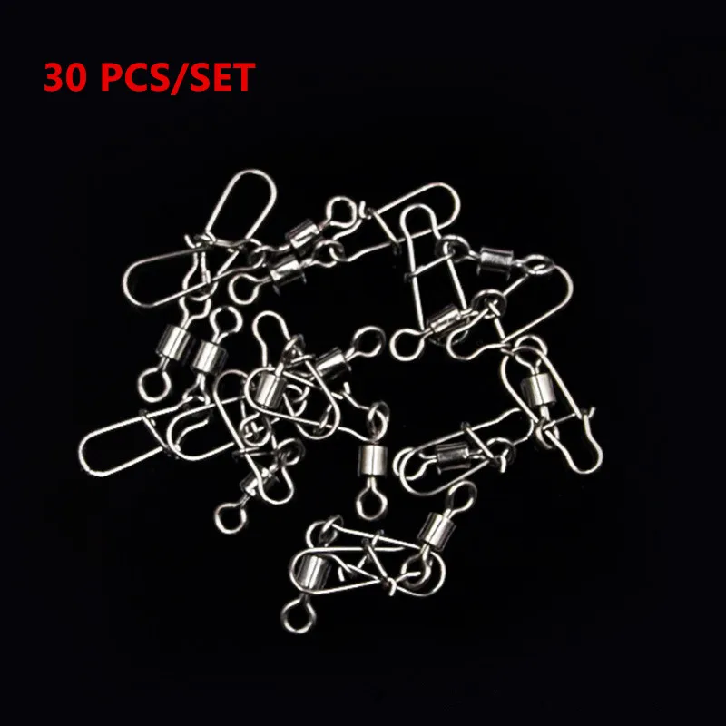 Accesorios de pesca de Lucio, Pin conector de rodamiento giratorio de acero inoxidable, anzuelos de pesca a presión, señuelo, aparejos de pesca, 30 unids/set
