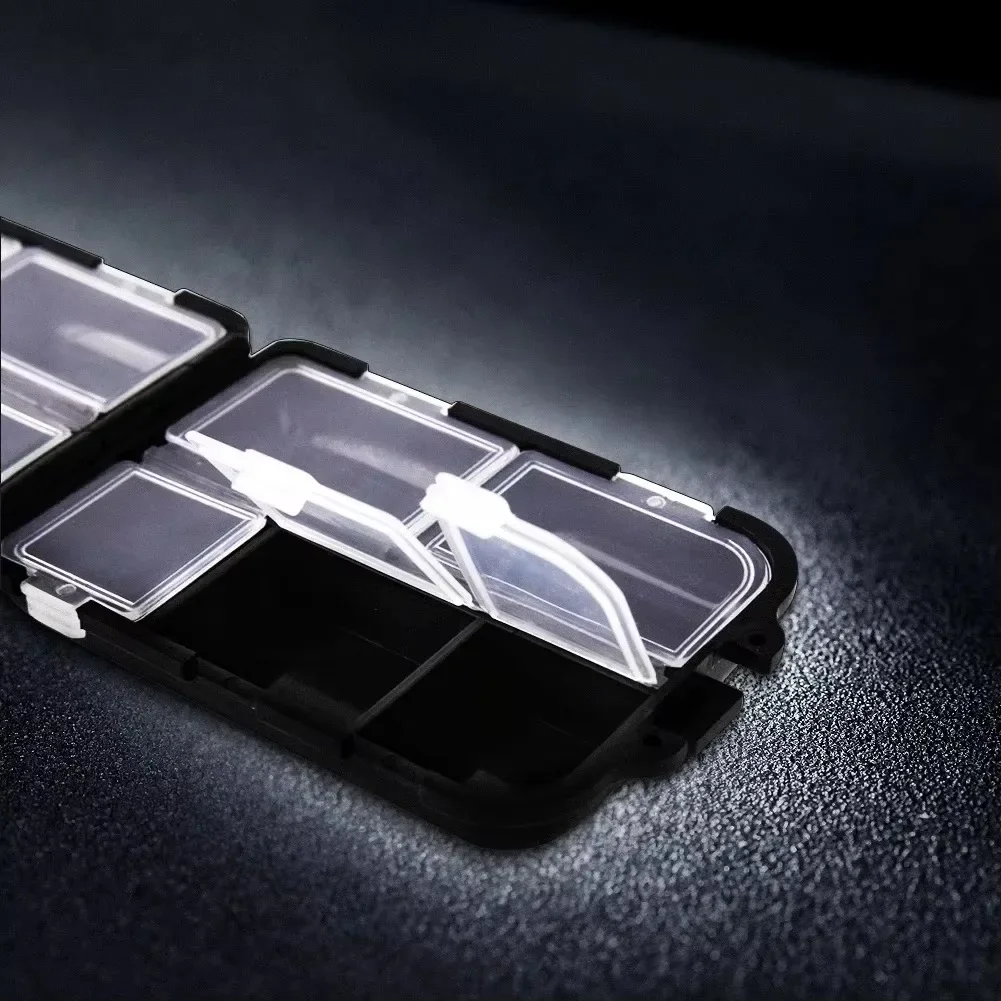 Accesorios de pesca portátiles Mini caja de almacenamiento de cebo tipo Flip 4 colores Caja de equipo de pesca multiformato Accesorio organizador impermeable
