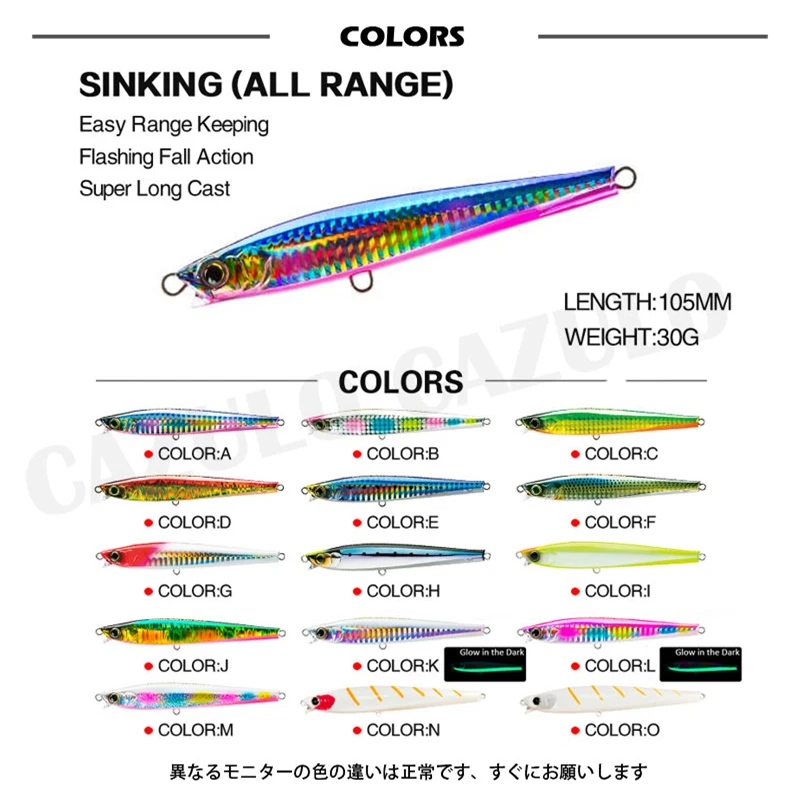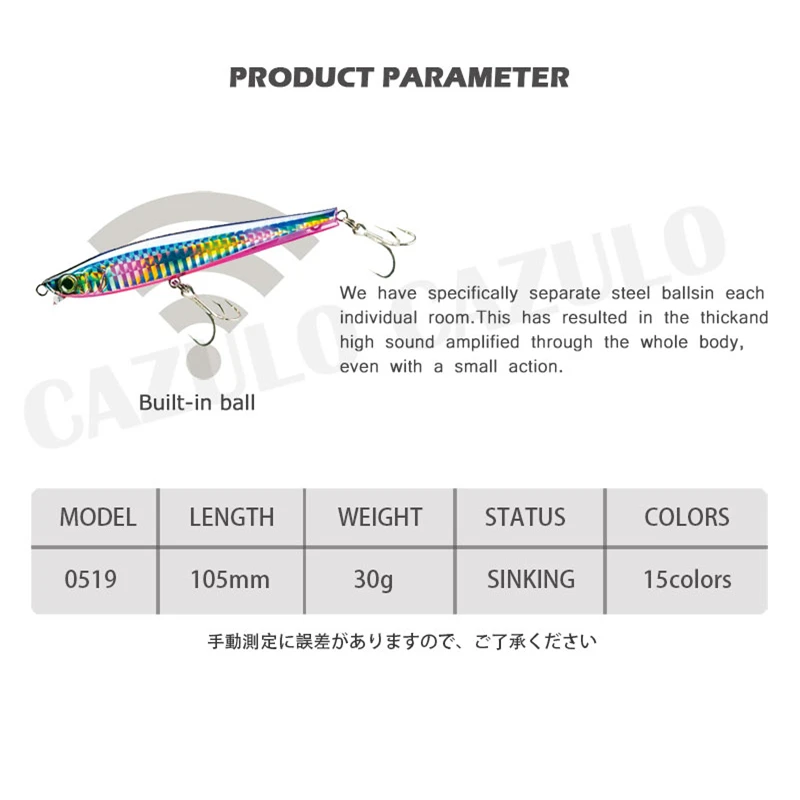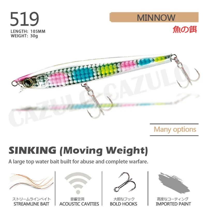 Accesorios de Pesca señuelo Minnow pesos 30g 105mm Isca lápiz de hundimiento Artificial Pesca Wobblers Trolling Peche A La Carpe Leurre