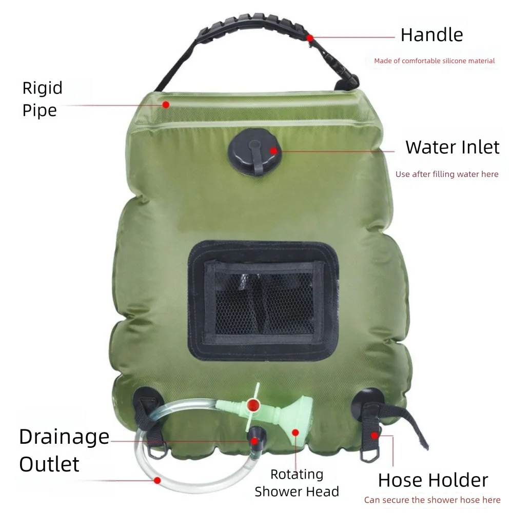 Are you tired of not being able to take a refreshing shower while traveling outdoors? Don't look at it anymore! This outdoor 20L solar shower bag is designed to change your outdoor experience, bringing the comfort of a home shower to your camping site or hiking trail.