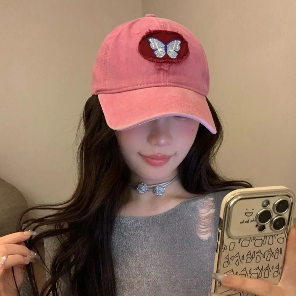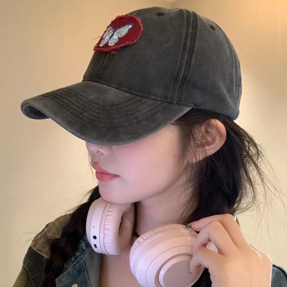Accesorios de ropa Gorra de béisbol bordada Sombrero de béisbol de algodón de mariposa Gorra con visera de dibujos animados simple y delgada Primavera/Verano - imagen 1