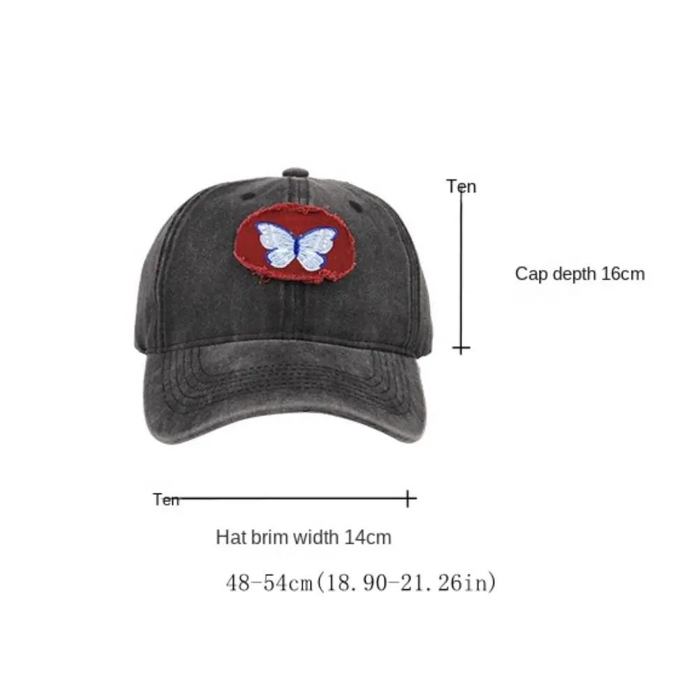 Accesorios de ropa Gorra de béisbol bordada Sombrero de béisbol de algodón de mariposa Gorra con visera de dibujos animados simple y delgada Primavera/Verano