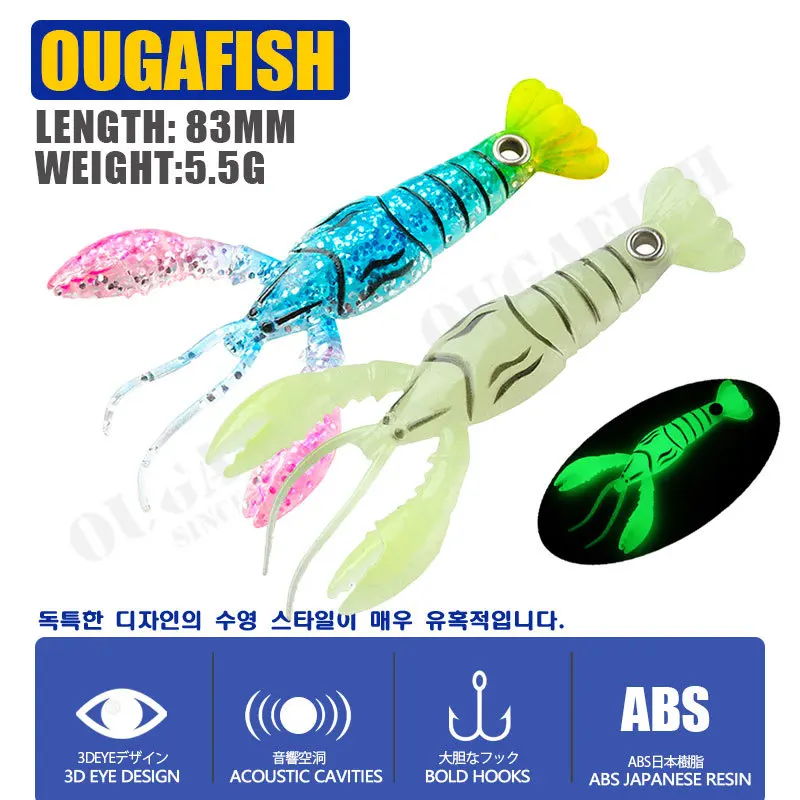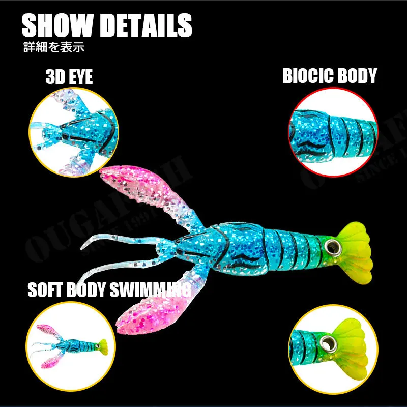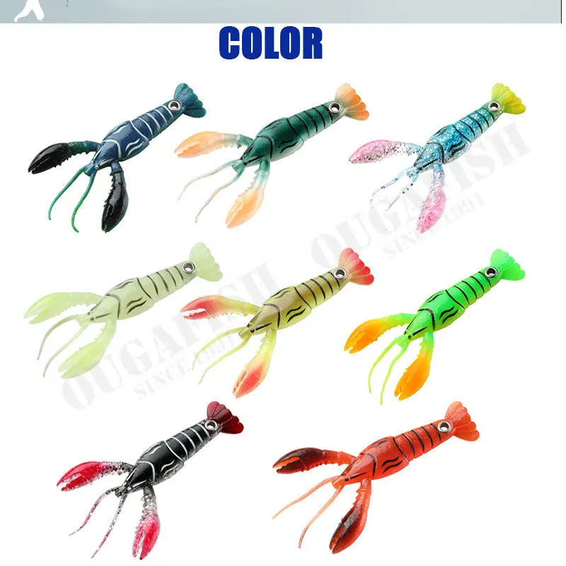 Accesorios de silicona suave 95mm 6g langosta señuelo de plástico suave pesca atractivo Gamba Wobbler lubina Peche En Mer Artificial