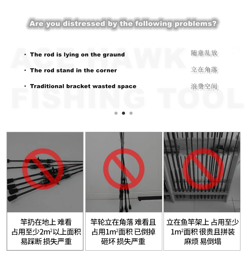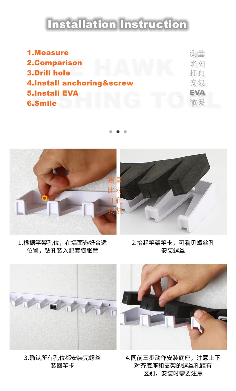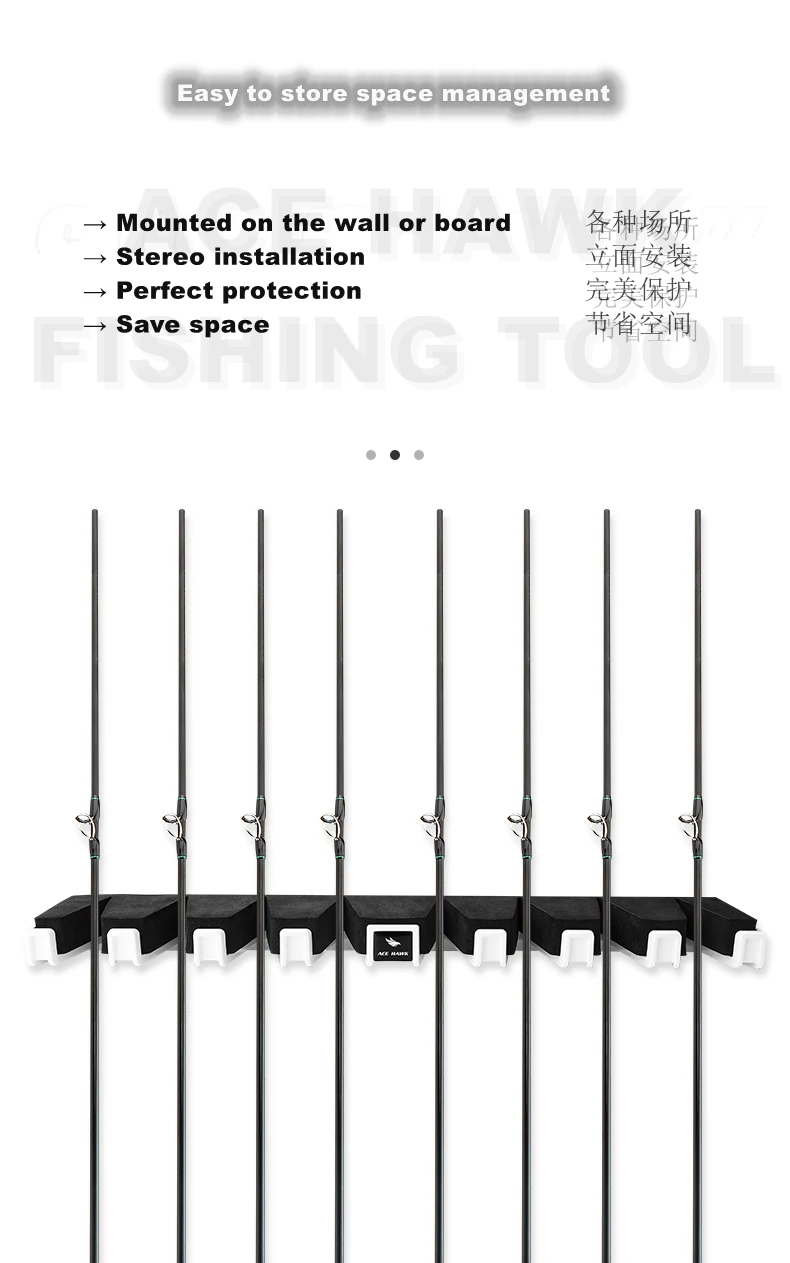 Ace Hawk 8 cañas de pescar, soporte de montaje en pared, 2 modelos, instalación Lateral Vertical, soporte de estante de almacenamiento