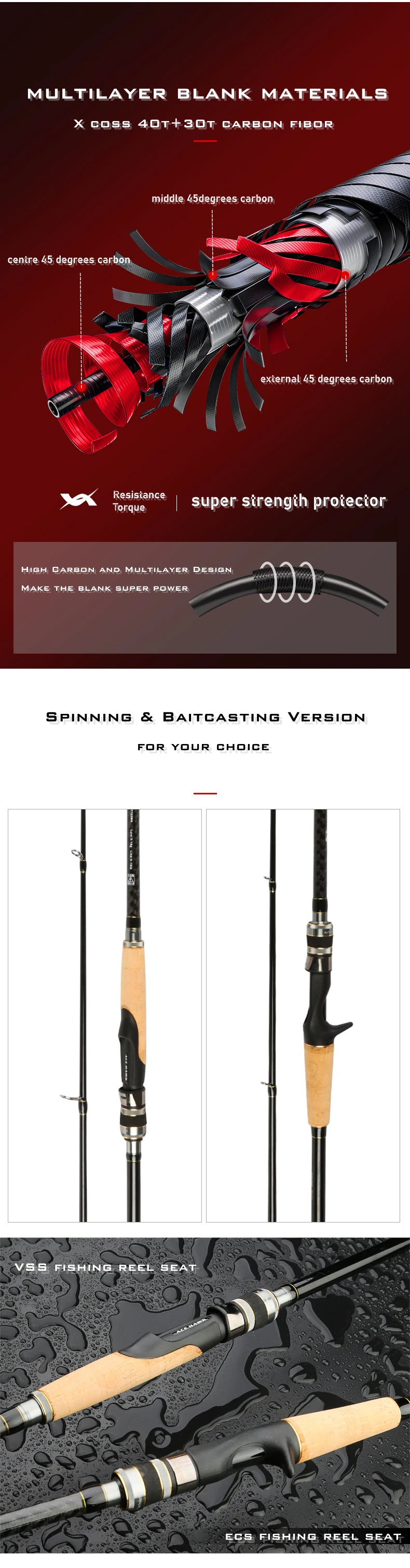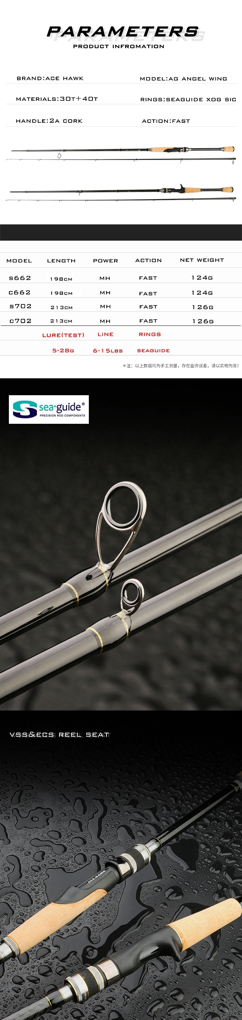 ACE HAWK nuevo 662 702MH caña de pescar clásica de lubina de alto carbono acción rápida 5-28G prueba de Lucio aparejos de pesca