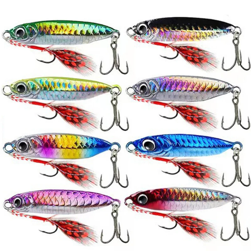 Ackibbik-cuchara de plantilla de Metal, 8 Uds., 10g/30g, cuchara de Jigging fundida, plantilla de agua salada, señuelos de Jigging de tierra, señuelo de cuchara de plantilla fundida de Metal