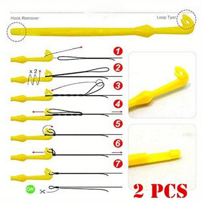 Aplicación: Adecuado para anudar rápidamente el hilo de pescar y también se puede utilizar como removedor de anzuelos para quitar anzuelos.