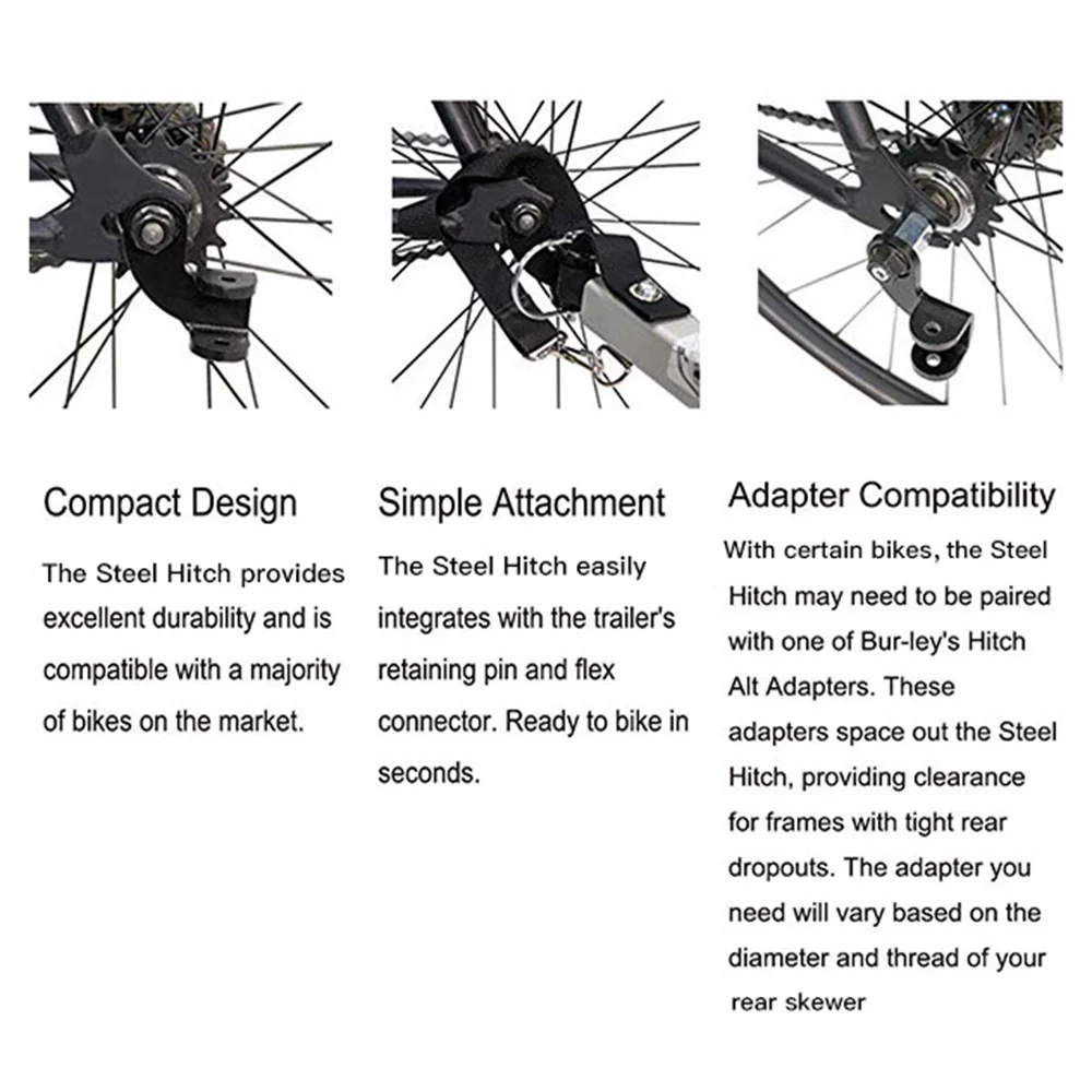 Acoplador de acero para bicicleta y remolque, accesorio de enganche, codo en ángulo para remolques Burley, cabeza de tracción contra fallos, herramientas de ayuda de servicio Bick