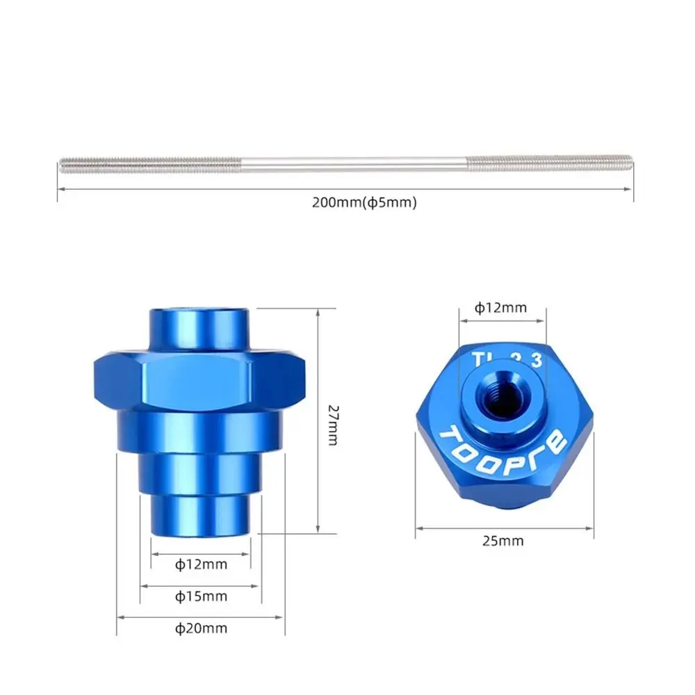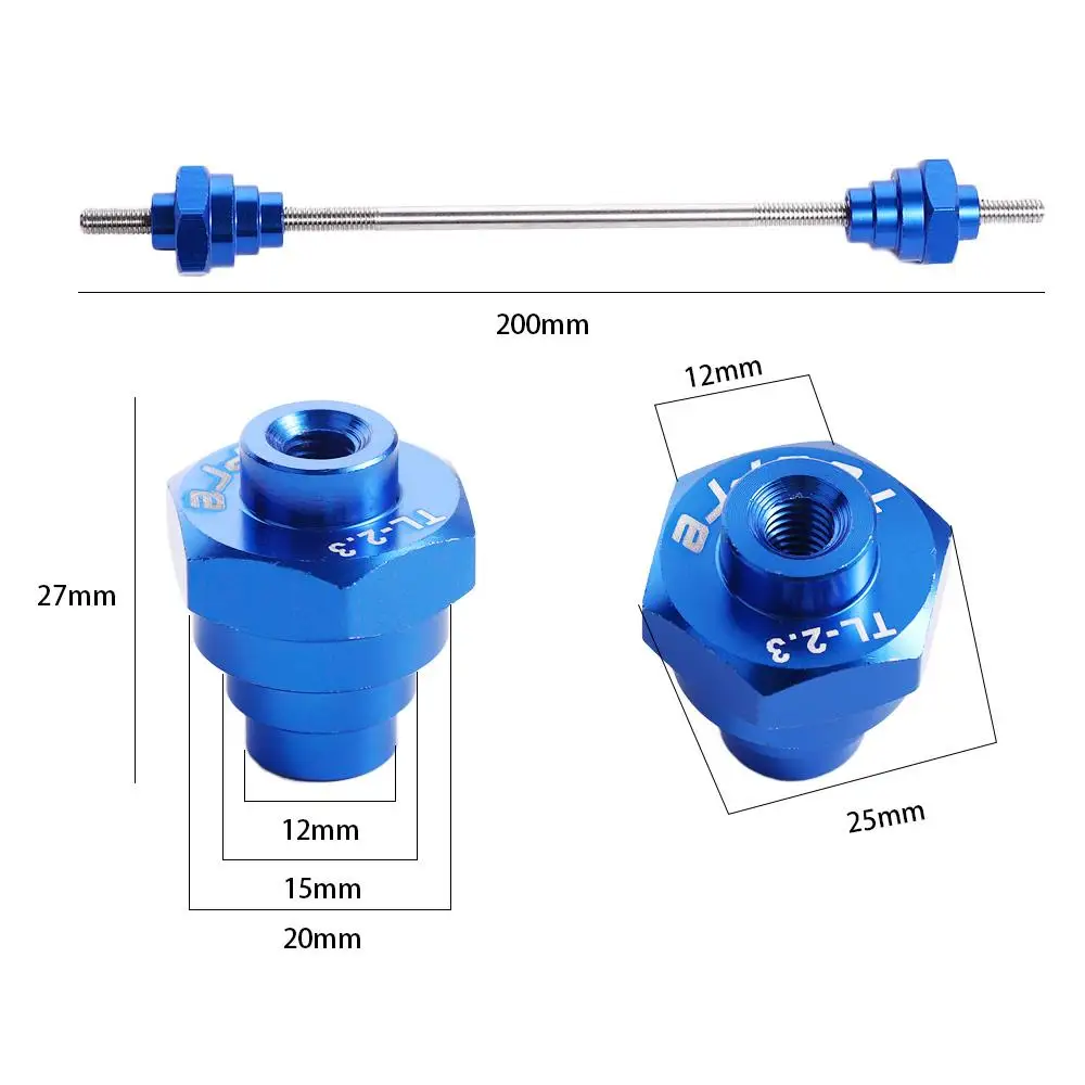 Tamaño: 25X27mm (bloque), 200xmm (tornillo) Material: aleación de aluminio + acero inoxidable 304 Aplicable: adecuado para buje de eje pasante de 12/15/20mm, rango de apertura 85-175mm Cantidad: 1 pieza Paquete incluido: 1 pieza Adaptador de eje pasante de bicicleta Característica: Diseño liviano de aleación de aluminio, alta resistencia; Torneado CNC, anodizado; Tornillo de acero inoxidable 304, hilo liso. Alta dureza, peso ligero, mecanizado fino, rosca lisa, longitud 200mm, diámetro 5mm acabado CNC, anodizado, Compatibilidad de color brillante aplicable a muchas especificaciones, adecuado para buje de eje pasante 12/15/2OMM, rango de apertura 85-175mm.