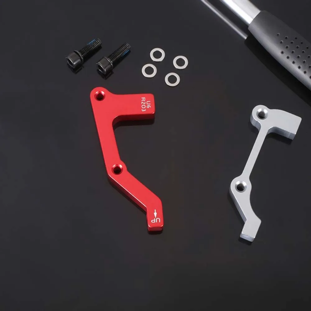Material: aleación de aluminio Color: negro/azul/oro/rojo/plata Distancia del perno: aprox. 74mm Longitud: aprox. El Paquete de disco de 85mm para delantero 203/trasero 180mm/trasero 203mm incluye: 1 Adaptador de freno de disco + 2 pernos de piezas