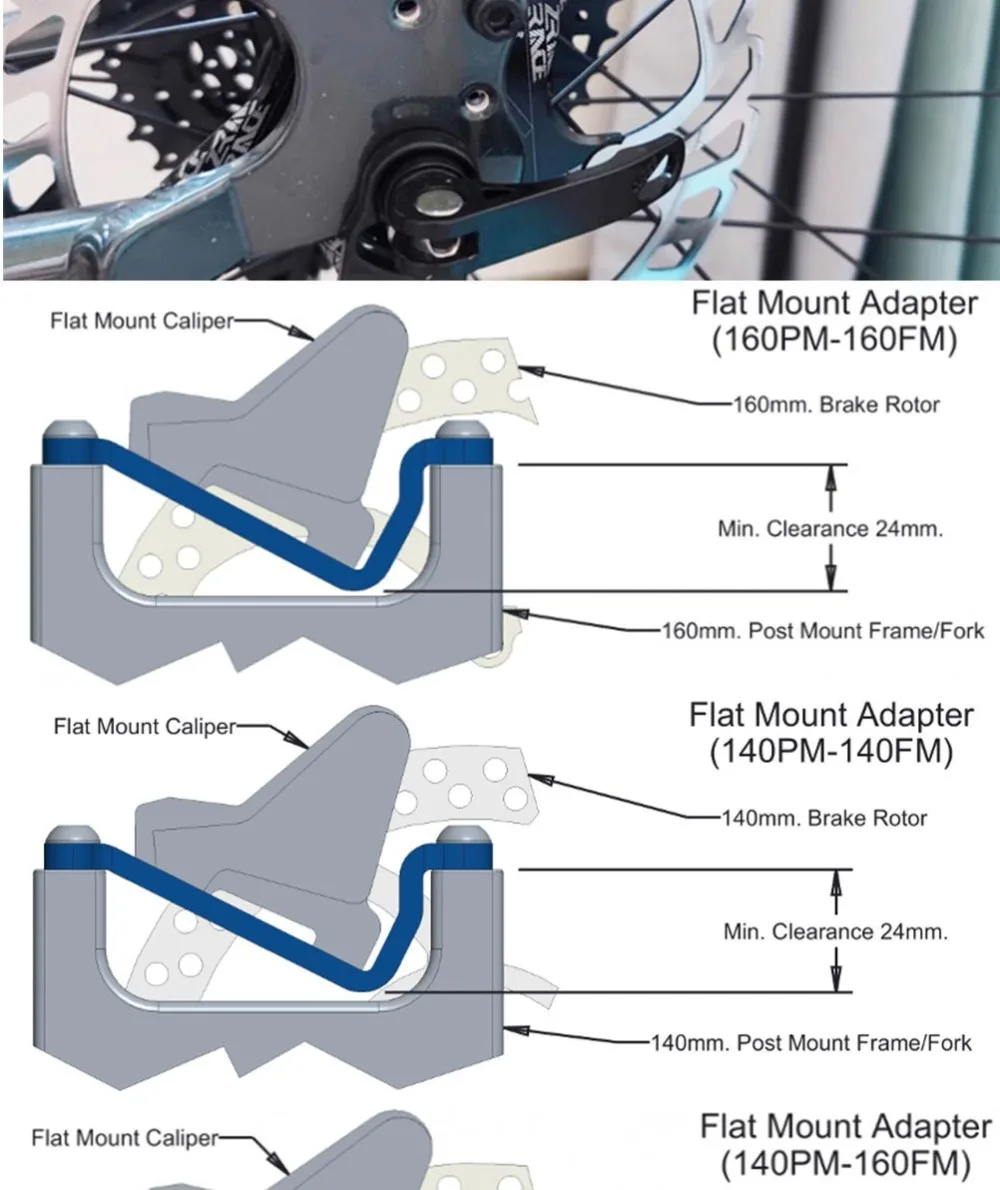 F6R6 F8R8 Fit for bike frame and fork PM(post mount) 74mm(2.91in) to 35mm(1.38in) FM (flat mount) caliper