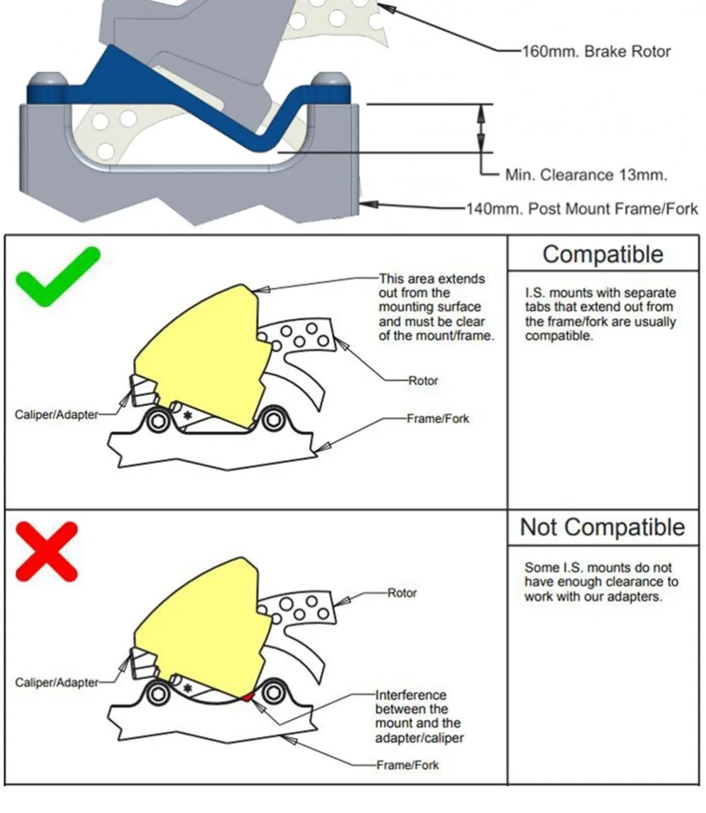 4.Standardized Mounting Distances: This front & rear disc brake caliper mount adapter accommodates the 34mm(1.34in) road bike caliper mount and the 74mm(2.91in) mountain bike caliper mount, enabling easy and accurate conversions.
