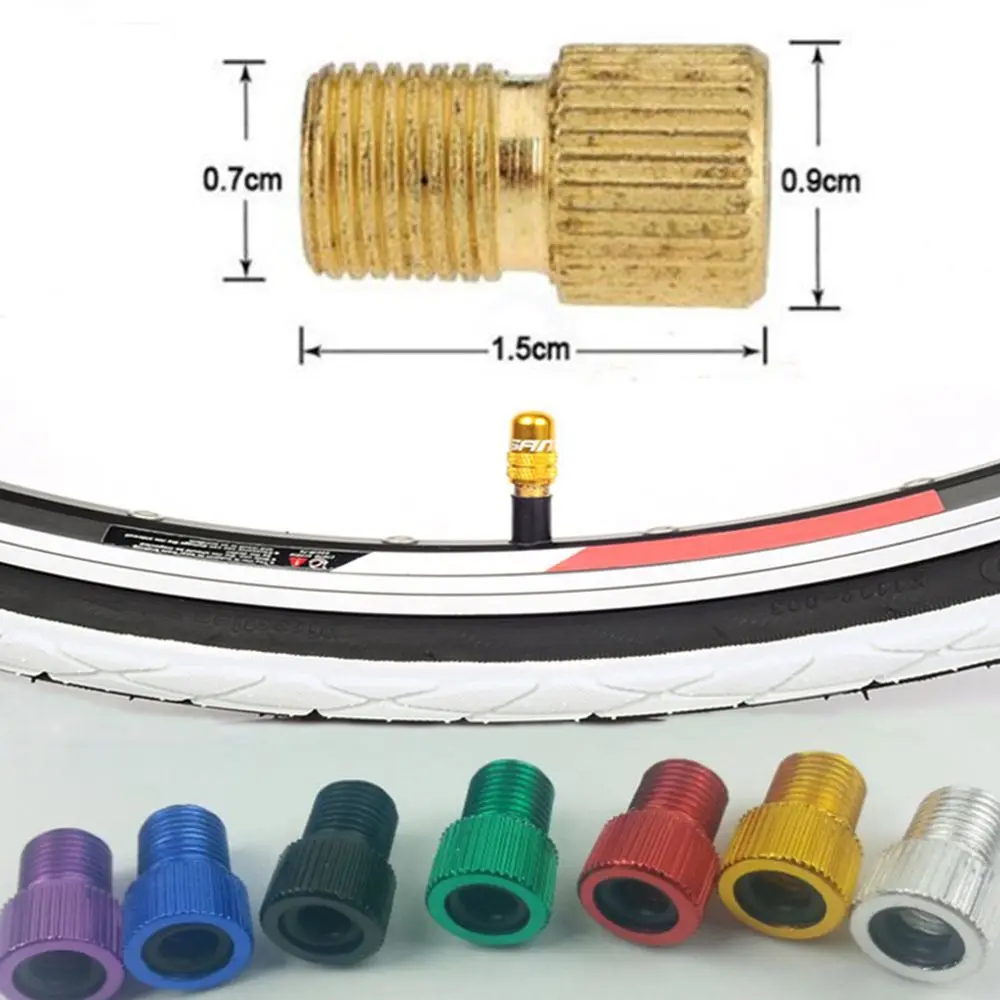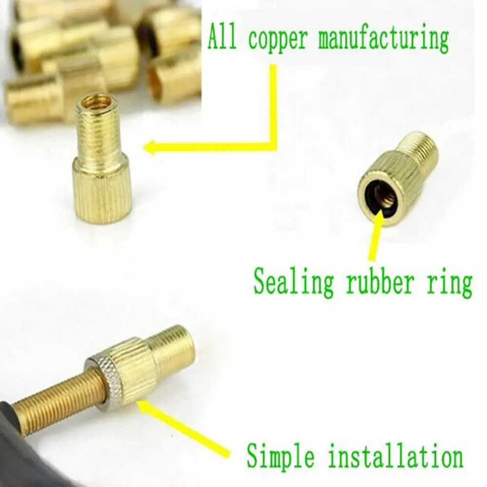 Convertidor dorado Presta a Schrader, adaptador de válvula de bicicleta, herramientas de bomba de tubo