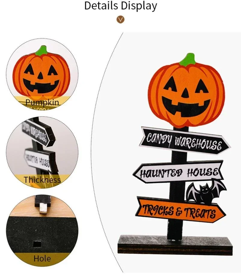 Adorno decorativo de madera para Halloween, suministros de fiesta, ambiente, calabaza, fantasma, bruja, 14x8cm