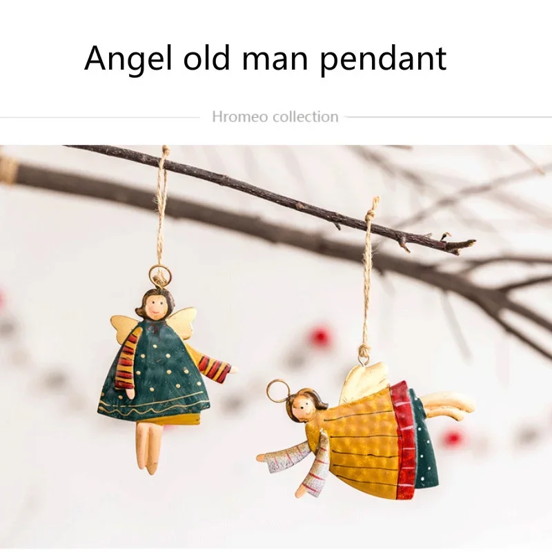 Adornos de Metal para decoración de fiesta, colgante de árbol de Navidad, muñeco, Papá Noel, Ángel, regalo