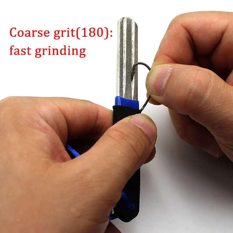 Características: 1. Diseño de doble cara: Este afilador de anzuelos cuenta con un diseño de doble cara para facilitar el afilado de anzuelos. 2 、 Fácil de agarrar: este anzuelo está diseñado con un mango de goma para permitirle sostenerlo de manera estable. 3. Fácil de almacenar: con la cuerda de mano, este anzuelo se puede colgar en la pared o en los lugares con ganchos. 4. Accesorio de pesca: un artículo imprescindible en su bolsa de aparejos. Haga que su día de pesca sea más maravilloso. 5. funda protectora Con: viene con funda de PVC para una buena protección. Práctico y duradero. Especificaciones: Artículo: Afilador de anzuelos de pesca Material: Diamante Molinillo de doble cara: Grano fino (400): Grano fino en punta de anzuelo Grano grueso (180): Molienda rápida El paquete incluye: 1 piezas