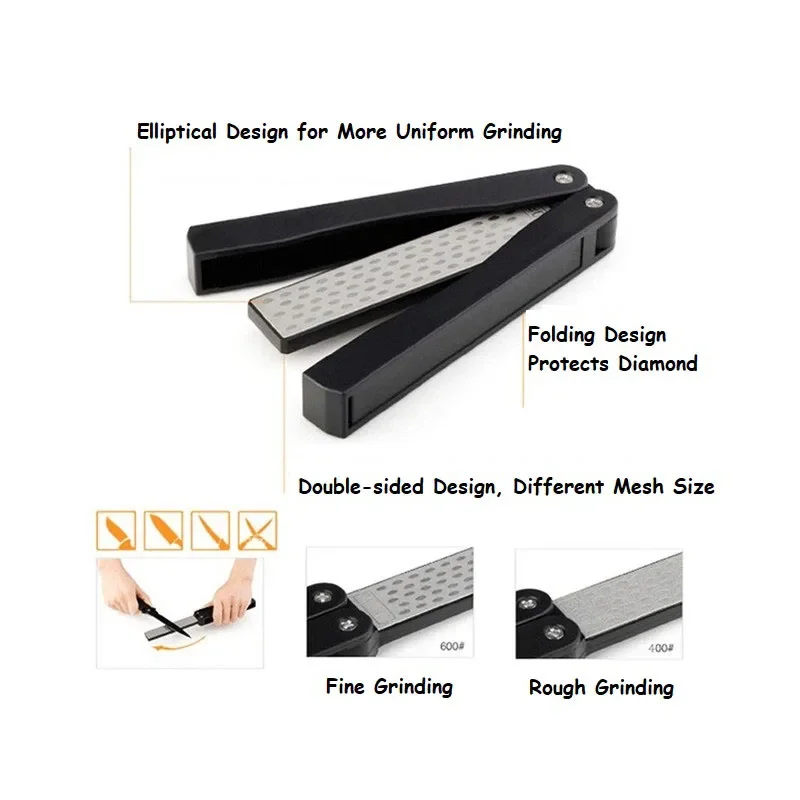 Afilador de cuchillos de bolsillo plegado, menos riesgo de dañar los bordes.