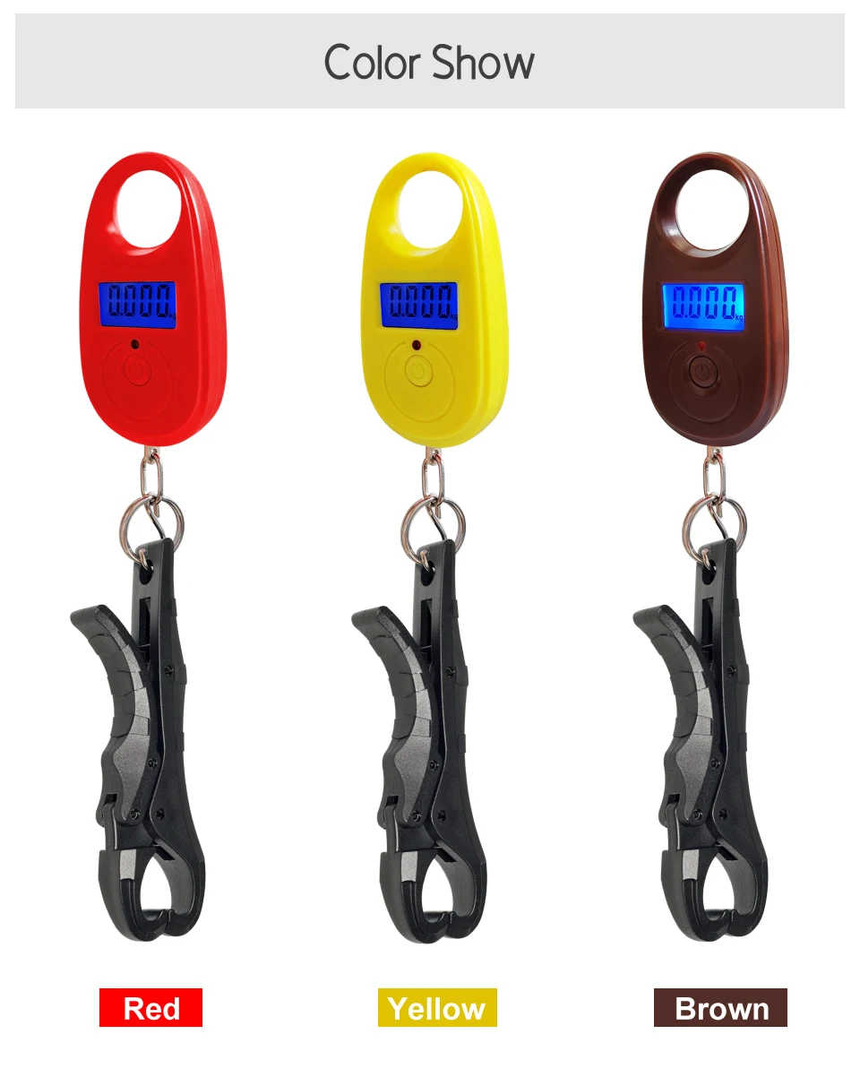 Agarre de pesca Clip de pescado Mini báscula electrónica digital con batería Agarre de labio de pescado de plástico Equipo de aparejos de viaje al aire libre Herramienta de mar