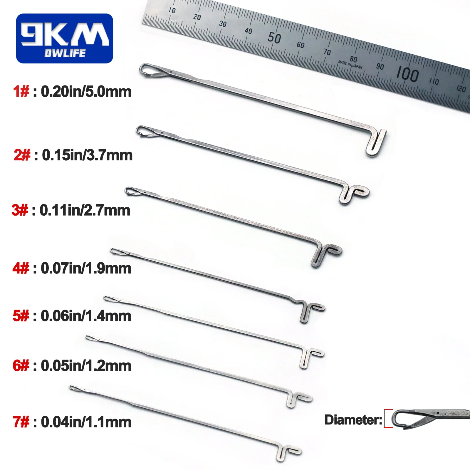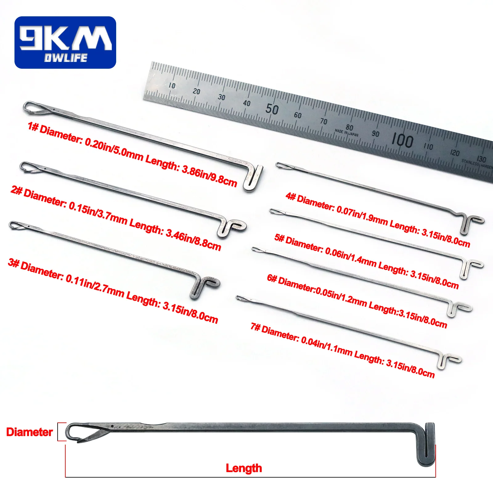 7 # Diámetro: 0,04 pulgadas/1,1mm Longitud: 3,15 pulgadas/8,0 cm
