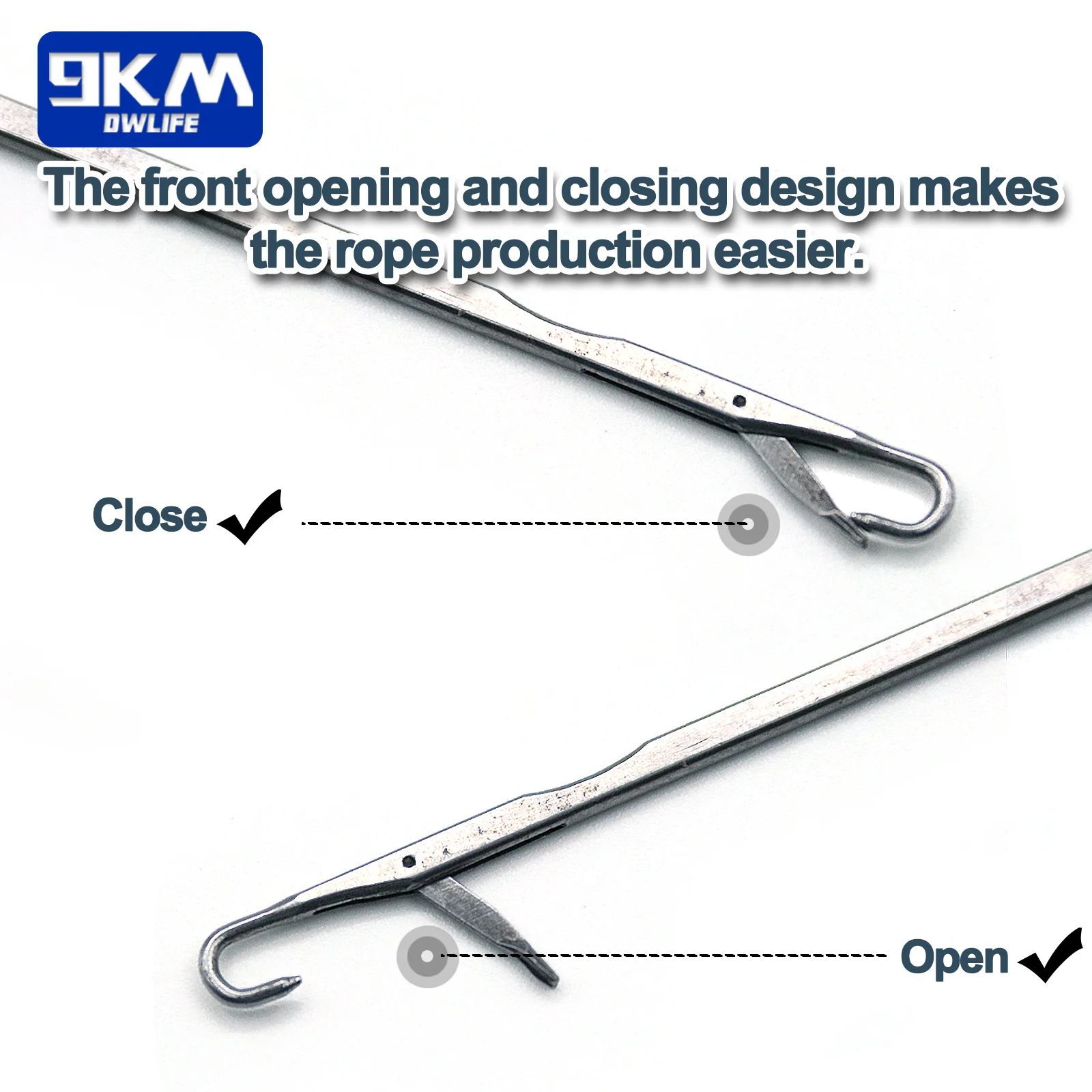 Por supuesto, cuando el cordón de asistencia de pesca se desgasta y se rompe después de un uso prolongado, no puede tirarlo simplemente, ¡comience a reparar sus anzuelos con bricolaje! El Juego de Herramientas de aguja de pestillo inverso 9KM DWLIFE seguramente será un buen compañero en su largo viaje de pesca.