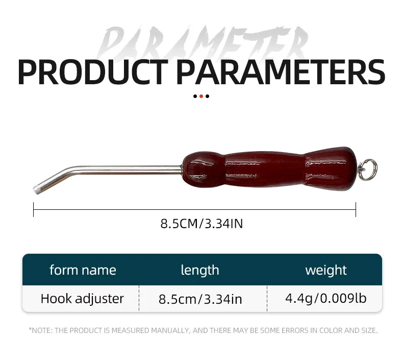 Lula Hook Adjuster es una herramienta especializada diseñada para remodelar anzuelos de calamar deformados.La herramienta fabricada en acero inoxidable 304 y mango de madera.Puede remodelar y afinar los anzuelos de calamar doblados de manera fácil y segura.Este es un equipo importante para todos los pescadores de calamar que recuperan las plantillas de calamar destruidas a la funcionalidad.Nombre del productoAjustador de anzuelo de calamarMaterialAcero inoxidable + maderaMOQ10 piezas