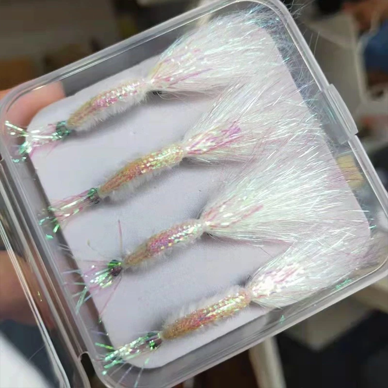 4 paquetes de gran volumen 65mm de largo doblaje de hielo ala de hielo nacarado flash sintético fibras finas cebo Camarón materiales para atar moscas