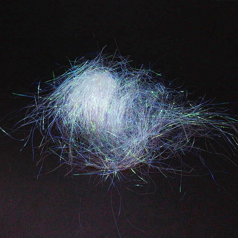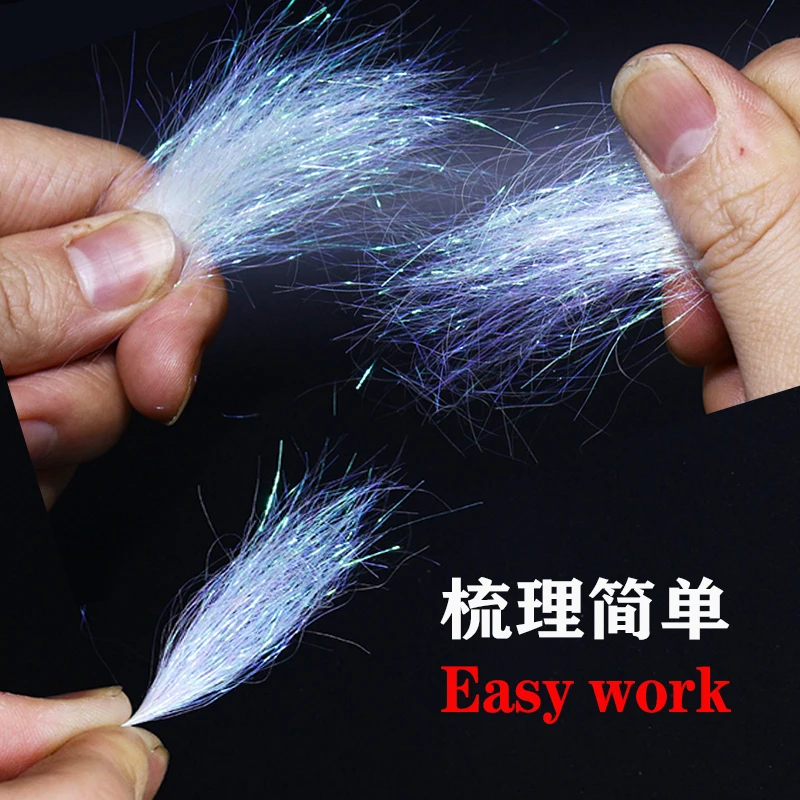 Especificaciones: Normalmente se puede atar en el pescado de hielo largo, camarones de hielo, etc. se puede mezclar en otras fibras largas para aumentar el efecto de flash.