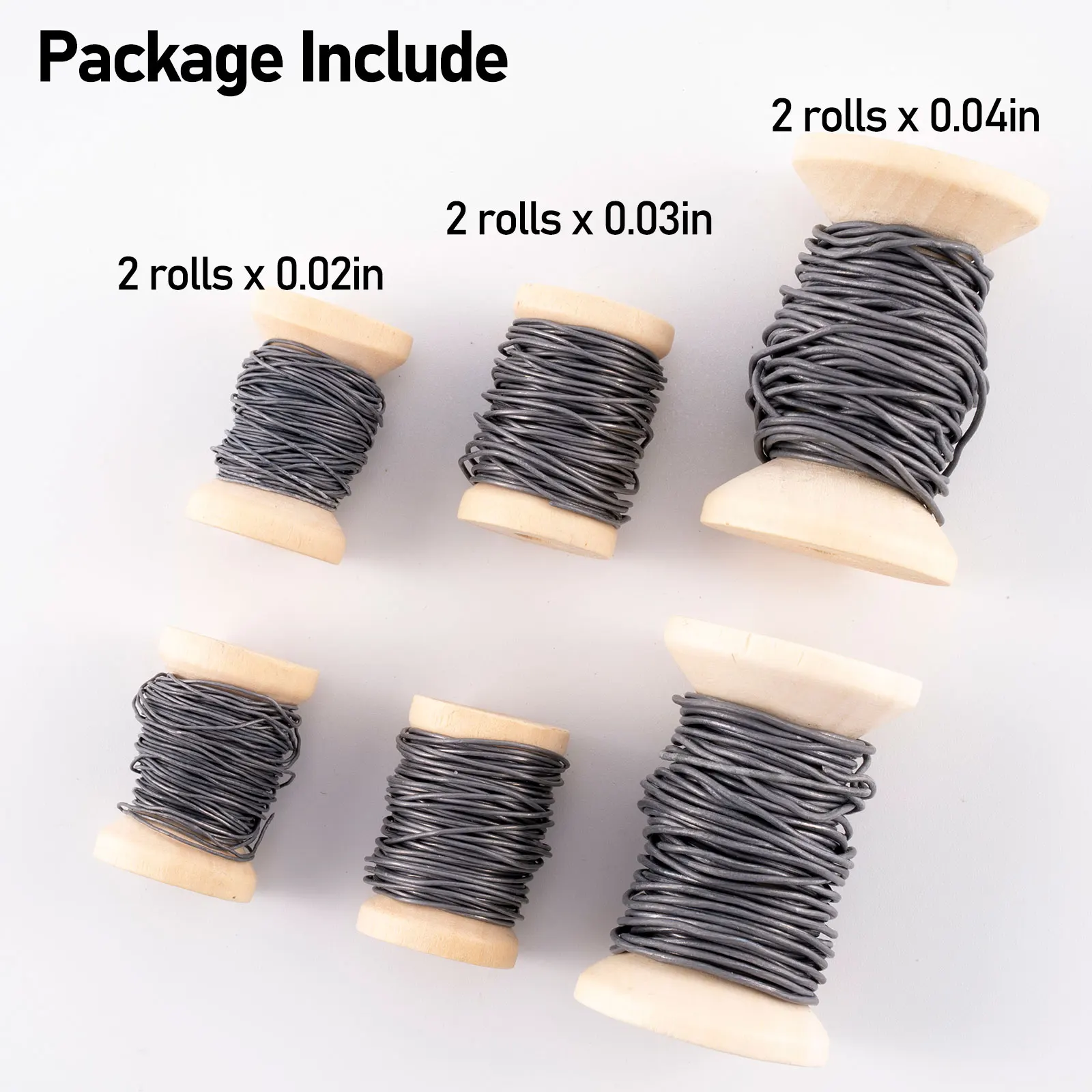 El paquete incluye: recibirás 6 rollos de cables de atado de moscas en 3 diámetros diferentes: 2 rollos x 0,02 pulgadas, 2 rollos x 0,03 pulgadas, 2 rollos x 0,04 pulgadas.
