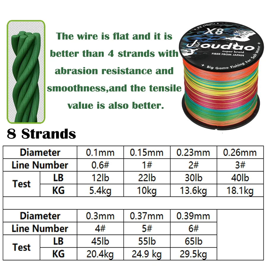 Línea de pesca trenzada de 8 hebras, resistente a la abrasión, estiramiento cero, trenza de pesca multicolor X8 para agua dulce salada, 1000 m, 1500 m, 10-220 lb, regalo de pesca, decoración navideña