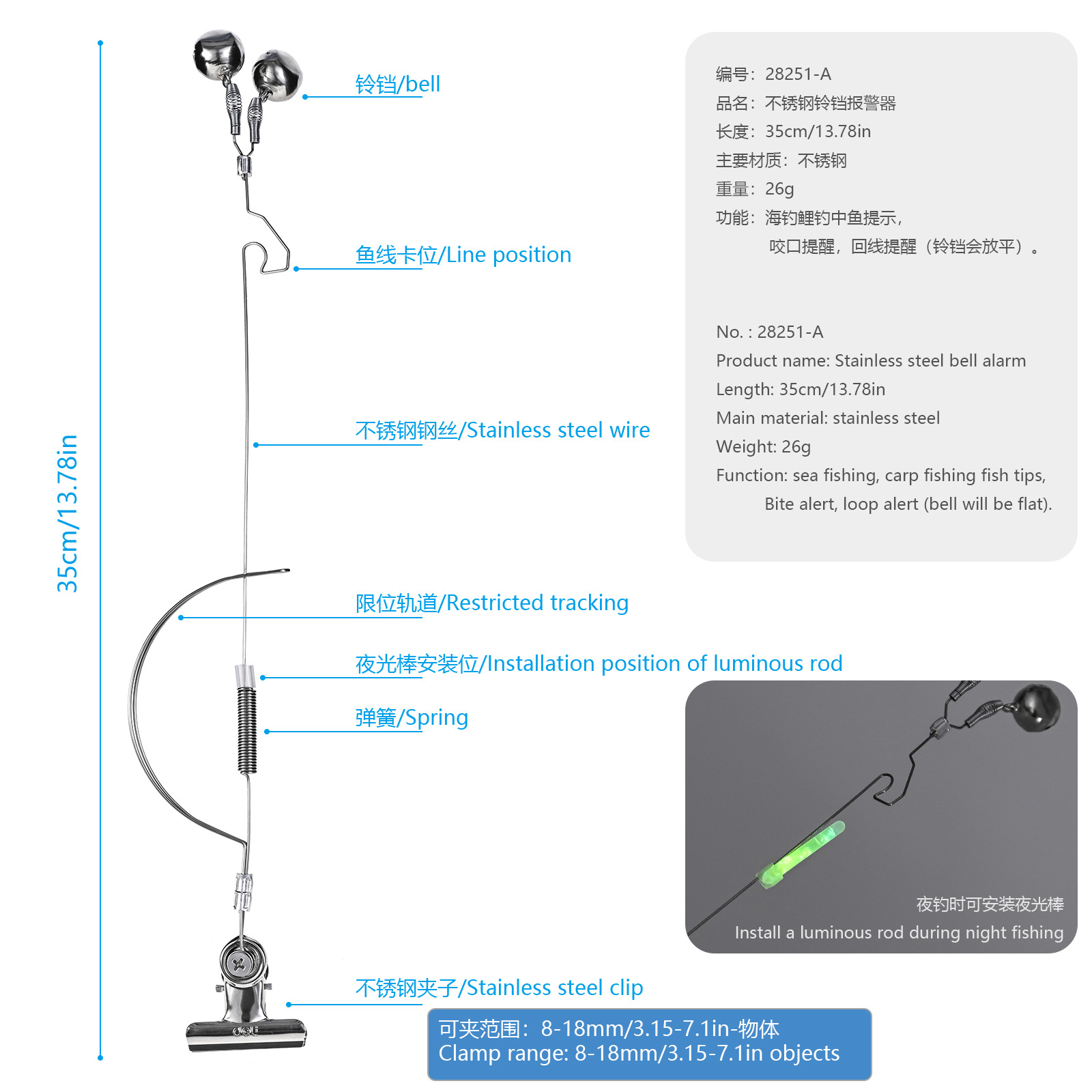 Alarma de anzuelo de pesca, campana de pesca nocturna de acero inoxidable, caña de pescar ajustable, cebo que muerde ligeramente, equipo de pesca al aire libre