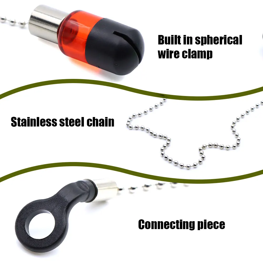 Our fishing alarms are equipped with a high-sensitivity design, perfect for both freshwater and saltwater fishing. The stainless steel chain ensures durability, while the ability to fix the indicator on the spool makes for easy use.