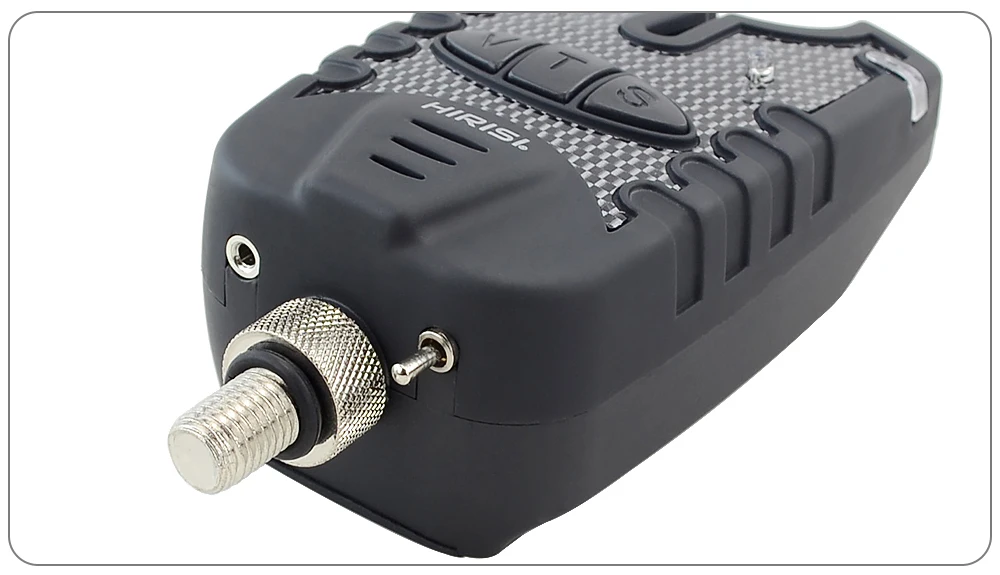 Un cable se conecta a la alarma de pesca, con luz LED intermitente