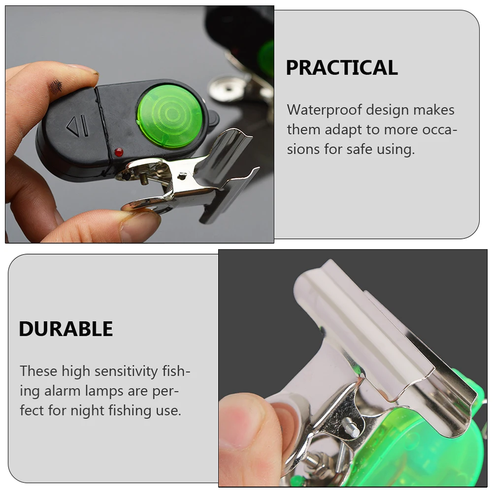 Alarma de mordedura de pez de pesca nocturna, alarma de pesca de alta sensibilidad, campana de sonido, indicador de luz LED, caña de pescar con Clip, zumbador, aparejos de pescado