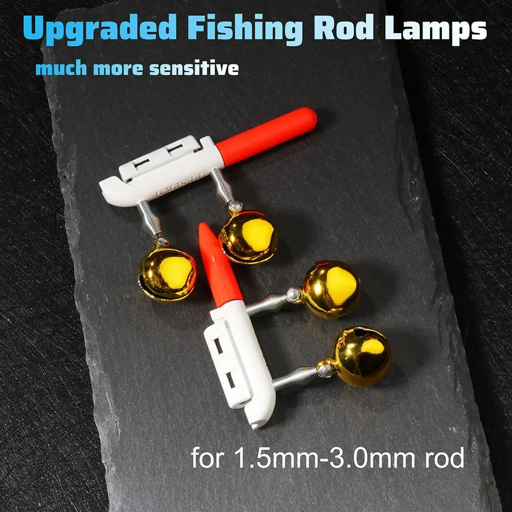 GOBAIT Luz de campana doble, palo de luz de pesca, clip de varilla, campana LED CR425 3,6V, batería de litio, carga USB, aparejos, accesorios luminosos, kit de lámpara brillante nocturna, alarma de picadura de pescado