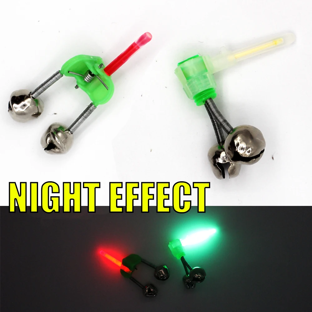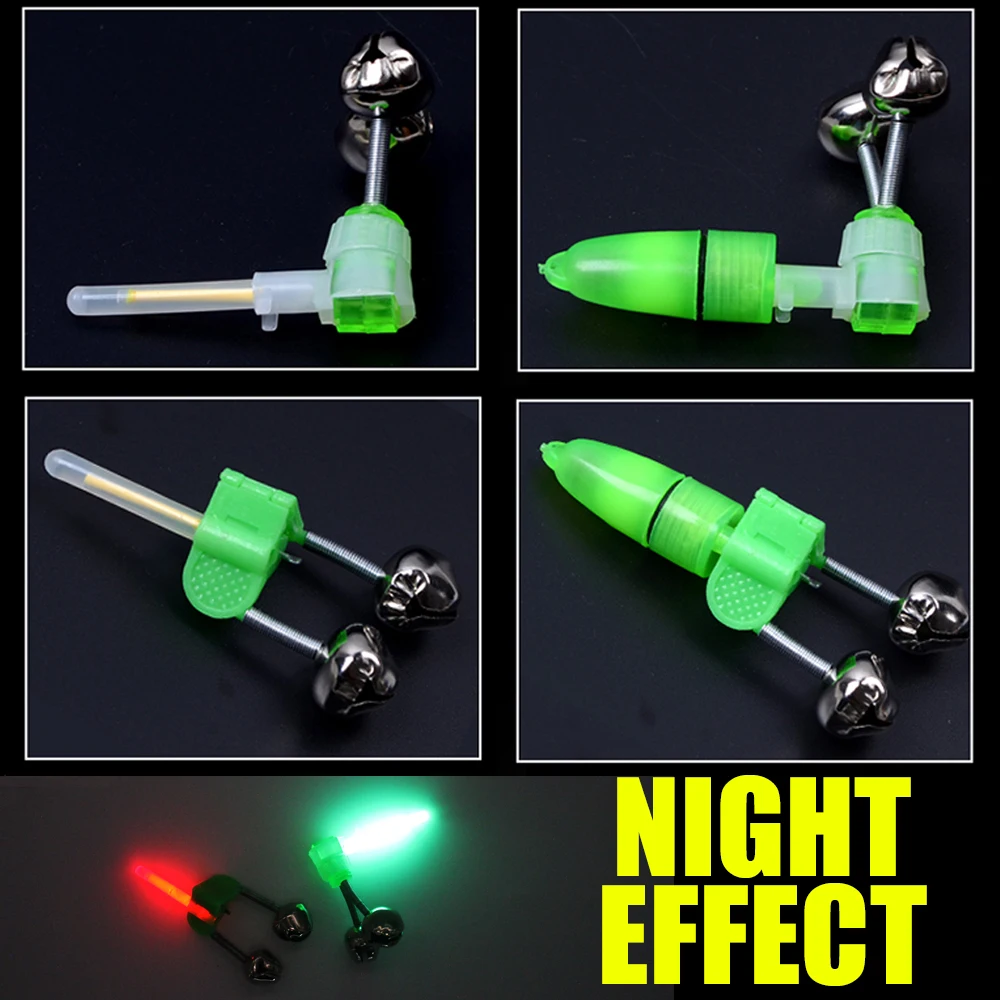 Alarmas de mordedura de pesca, cascabeles de caña de pescar, pinza de punta, anillo, accesorio de pesca ABS verde, nuevo, 3 unidades