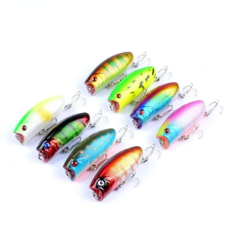Estos son coloridos señuelos de pesca. Vienen en una variedad de colores vibrantes como rojo, verde, azul, amarillo y rosa, cada uno diseñado para atraer diferentes tipos de peces. Los señuelos tienen una forma elegante, similar a un pez, con ojos realistas, lo que mejora su atractivo para los peces. Cada señuelo está equipado con anzuelos afilados que son resistentes y confiables para pescar. Los señuelos también son livianos y fáciles de lanzar, lo que los hace ideales tanto para pescadores principiantes como experimentados. Son perfectos para usar en diversos entornos de pesca, ya sea en un lago, río o mar. Estos señuelos de pesca no solo son herramientas prácticas para pescar sino que también atraen visualmente con sus acabados brillantes y relucientes.