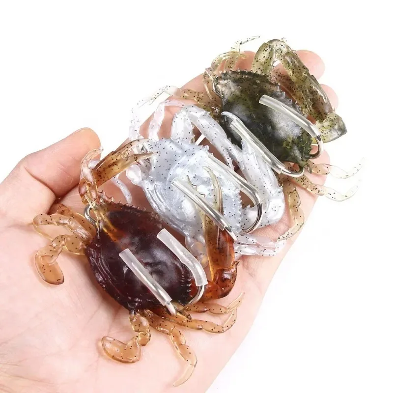 ALASICKA, 1 Uds., 80mm/100mm, cebo suave de cangrejo de goma de imitación 3D con doble gancho, cebo de pesca de mar, accesorio de aparejos de natación que se hunden