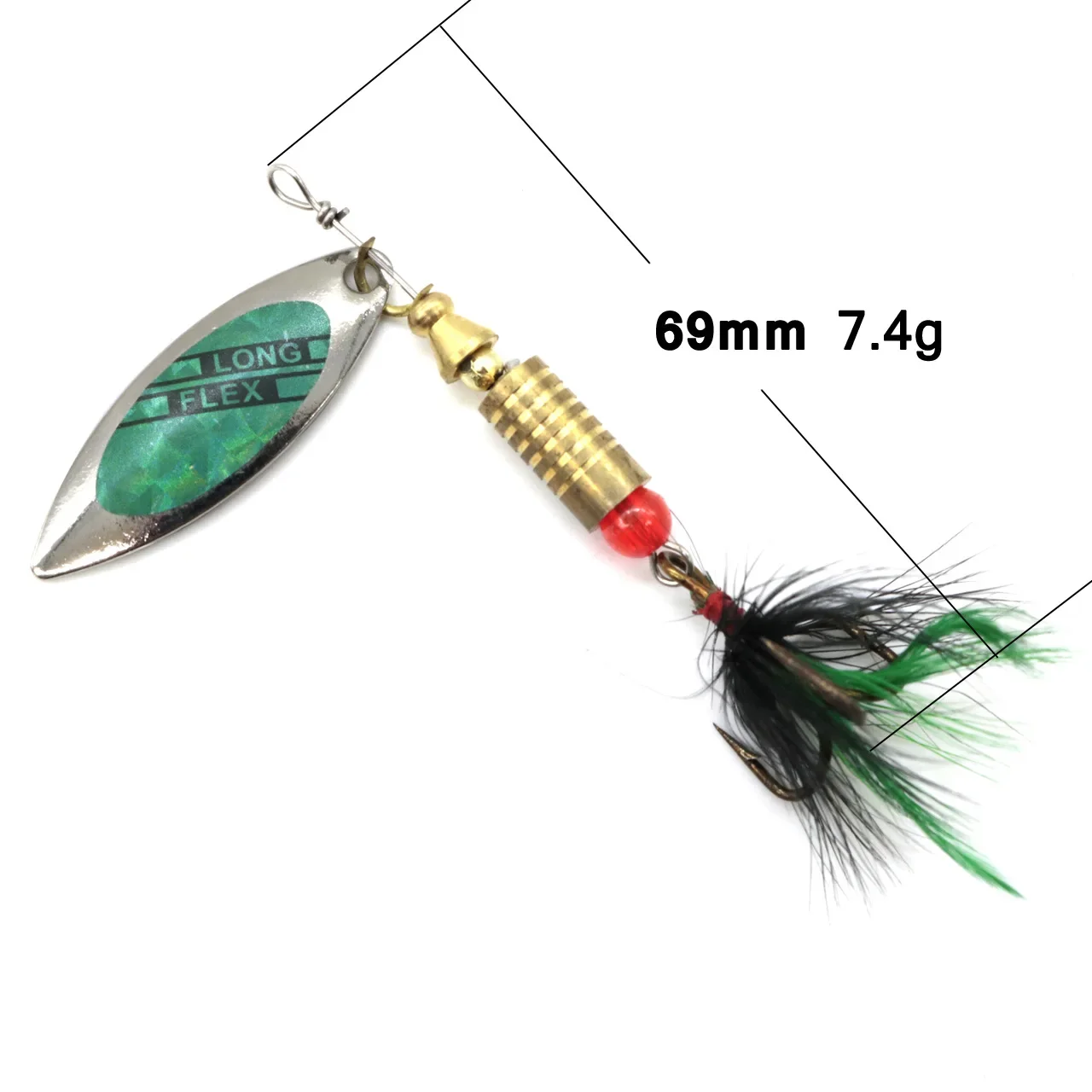 Los dos tipos de spinnerbaits más populares son el'spinner en línea' y el 'tail-spinner'. Cuerpo principal de latón mecanizado. Las hojas estampadas de acero están plateadas o pintadas.