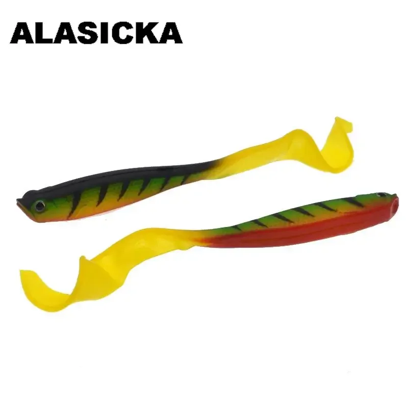 ALASICKA 4 Uds 12.5cm vientre abierto pez hueco cebo suave señuelo de pesca cola larga verde leopardo señuelos artificiales agua dulce agua de mar